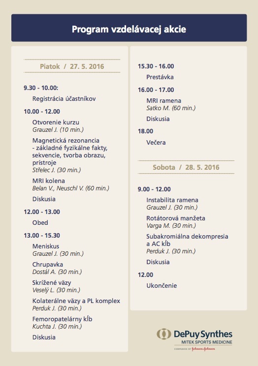 Program - Současný přístup k zátěžovému kompartmentu kolenního kloubu